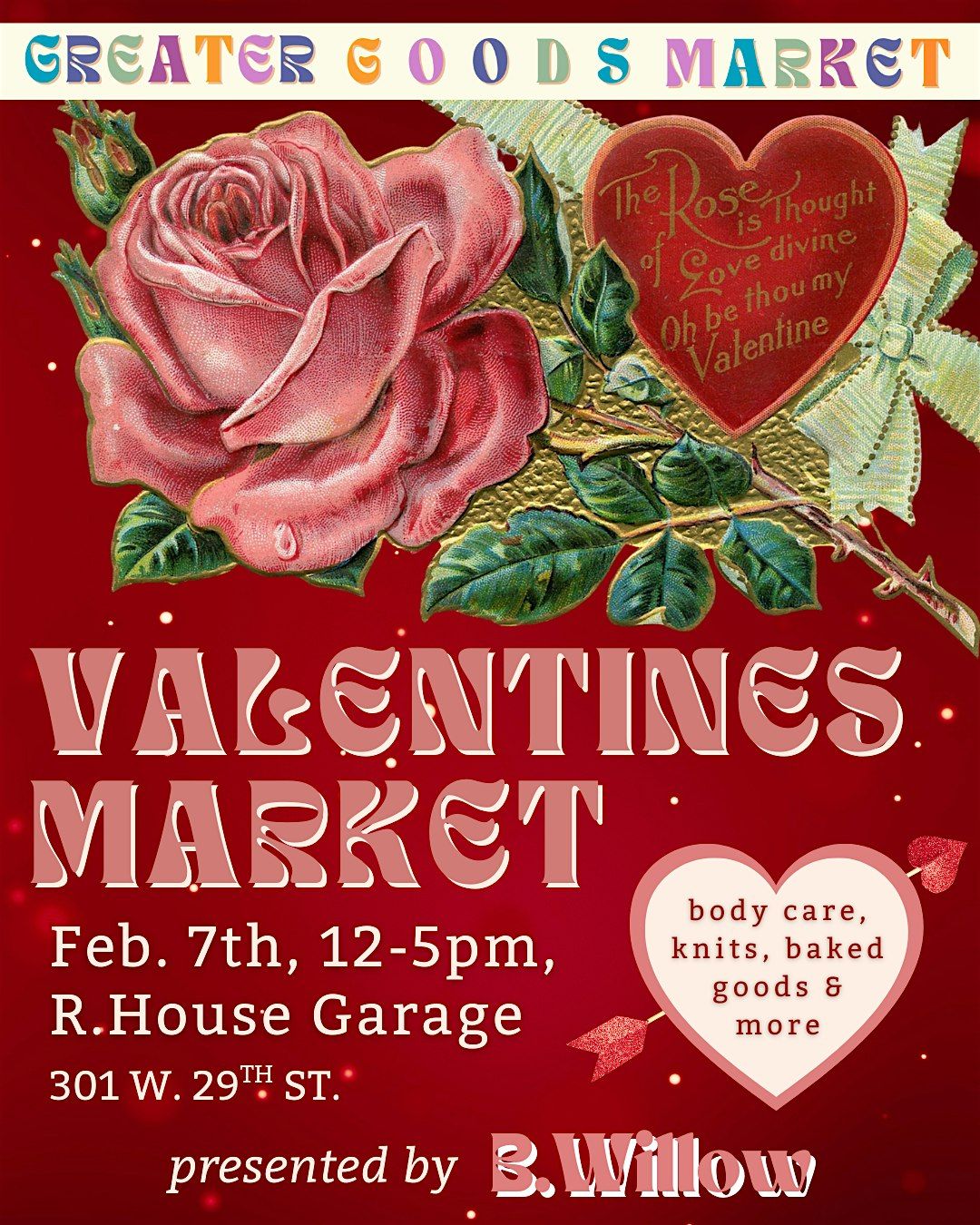 With rotating vendors, each market is different but retains a standard of high quality, thoughtfully made goods! If you're looking for a special valentines gift or something special for yourself, go no further than the Greater Goods Market. We look forward to seeing you soon! Please note, tickets are not required (Eventbrite just requires us to list tickets).