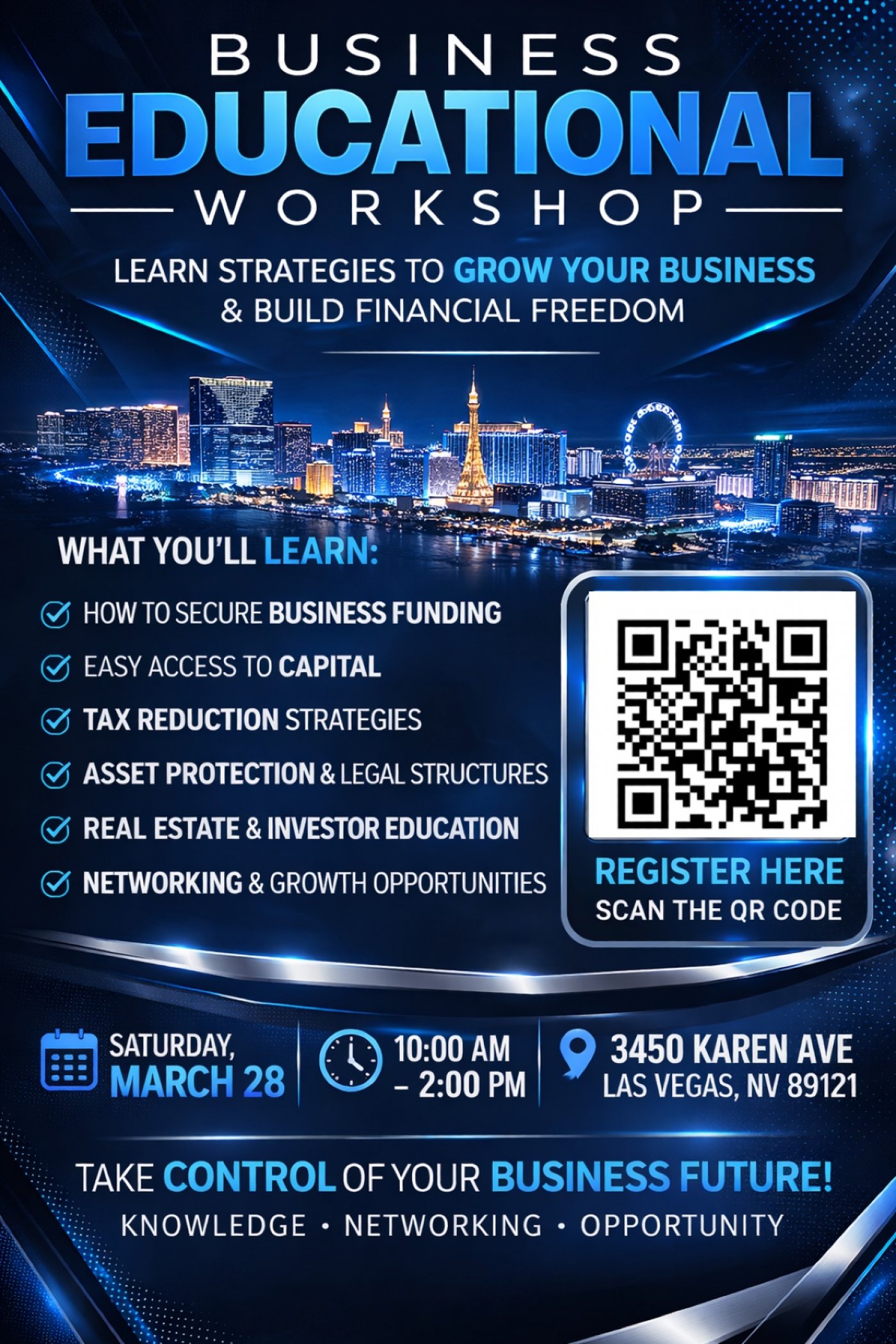Business Educational Workshop. Learn strategies to grow your business and build financial freedom.