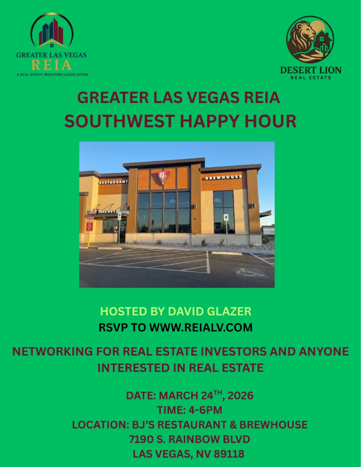 Our SW Happy Hour takes place every 4th Tuesday of each month. It's a great opportunity to meet and network with lenders, flippers, real estate agents and brokers, and other business professionals.