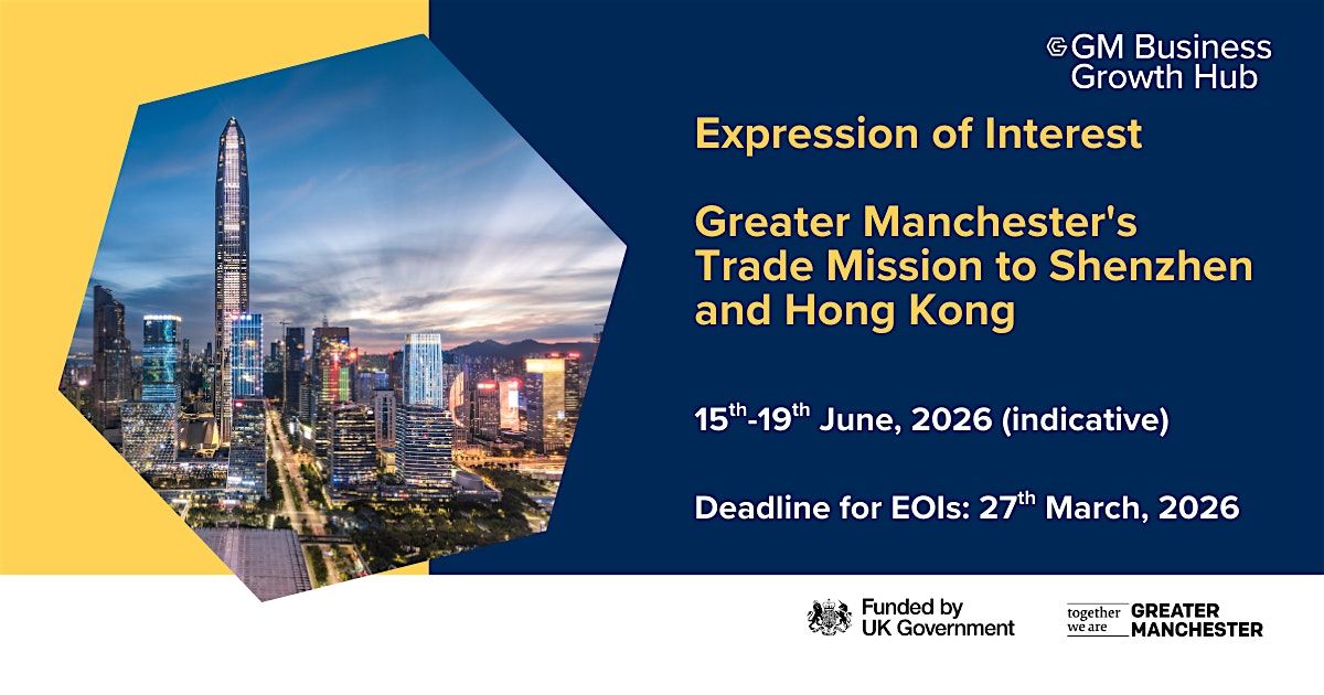 The GM Business Growth Hub, Manchester City Council, Greater Manchester Combined Authority and Department for Business and Trade are delighted to invite businesses in the city region to join us on the upcoming Trade Mission to China, led by Cllr Bev Craig, Leader of Manchester City Council and Greater Manchester Combined Authority portfolio lead for Economy, Business and Inclusive Growth.