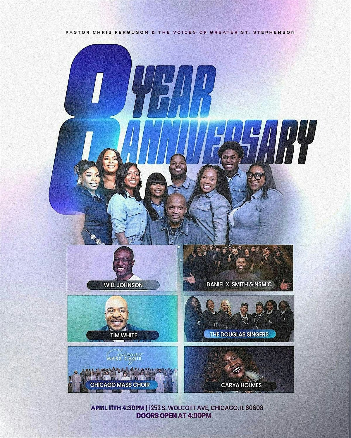 Join the Greater St. Stephenson MBC for a fantastic time as we mark our 8th Choir Anniversary! This is an in-person event filled with great vibes, soulful music, and plenty of fellowship. Come out, sing along, and make memories with friends old and new. It's all about spreading joy and celebrating our amazing choir's journey together. Don’t miss out on this special day!