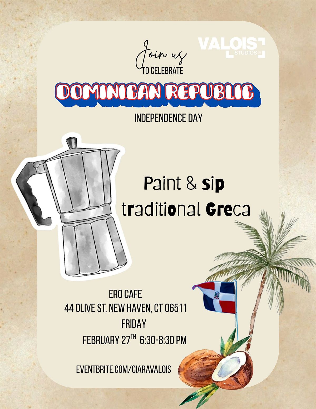 Get ready for a fun, laid-back night at Greca Sip & Paint. Unleash your creativity while enjoying your favorite drinks in a chill, friendly atmosphere. Whether you're a beginner or a pro, it's all about having a great time and making some cool art. Grab your friends, sip, paint, and let your imagination run wild! See you there for an evening of laughs, brushes, and good vibes!
