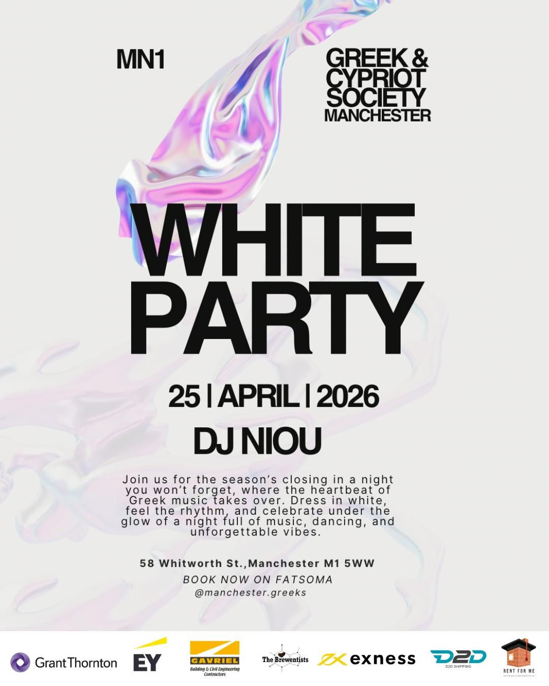 🇬🇷GREEK NIGHT CLOSING🇨🇾The Greek & Cypriot Society of Manchester presents the WHITE PARTY⚪️🪩
