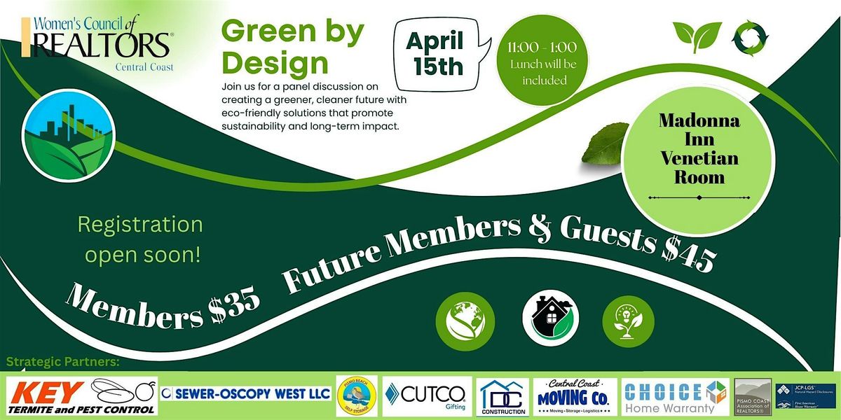 Join us for an awesome in-person event all about going green without breaking the bank! Discover easy ways to save money while helping the planet. Whether you're a seasoned eco-warrior or just starting out, there’s something for everyone. Come enjoy lunch while you learn, and get inspired to make greener choices every day. Our panel will discuss green construction and design features, green products, green incentives and loans to help with green renovation. Become an informed real estate professional by learning about the various ways to go Green. While your at it, let’s make saving some green a part of going green!