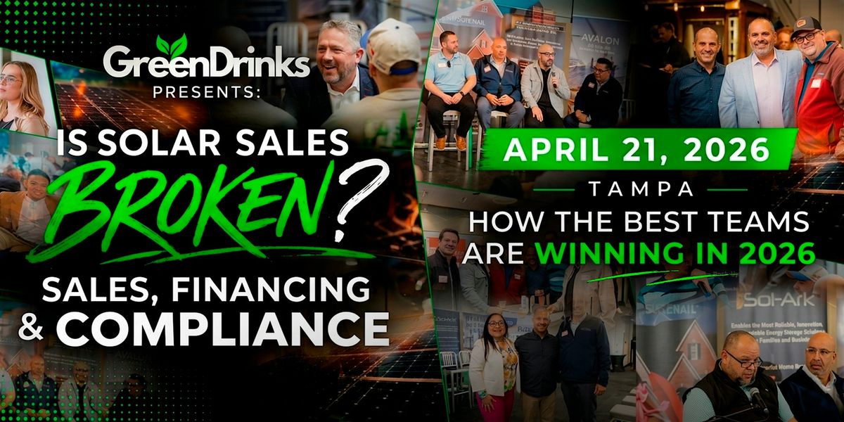 Join us for the next Green Drinks Tampa (April 21) — one of the best networking events for the sustainability, solar, and clean-tech community in Florida.
