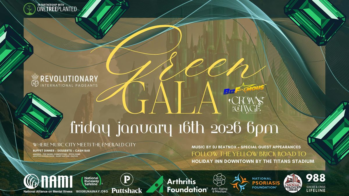The Annual Revolutionary Green Gala: Supporting Crowns for Change 💚 The Annual Green Gala is a signature evening of purpose, progress, and possibility. Bringing our community together in support of Crowns for Change and our Non-Profit Partners. Set high above the city in the Skyview Room on the 9th floor near the Titans Stadium downtown, guests will enjoy breathtaking views of the Nashville skyline while celebrating the power of social impact through music, storytelling, fashion, and philanthropy.