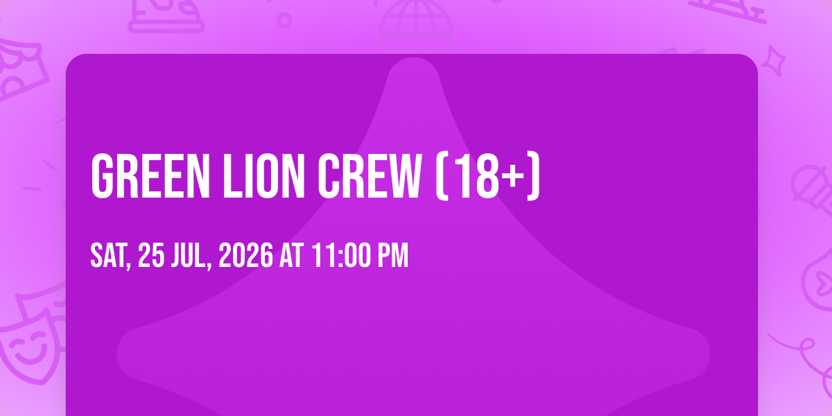 📍 Location: 42.3529, -71.1326🎉 Prepare to be amazed at Green Lion Crew (18+), the most anticipated gathering of the season! 🌟 Set against the stunning backdrop of Brighton Music Hall in vibrant Boston, MA, this event promises to redefine your expectations. 📅 Mark your calendars for July 25th, 2026 at 11:00 PM and get ready to immerse yourself in an atmosphere of wonder and excitement. ✨ From the moment you arrive, you'll be transported into a world where memories are made and stories come alive. They have crafted an experience that perfectly harmonizes entertainment, innovation, and community spirit. 🌈 Join us as we create moments that will be discussed for years!