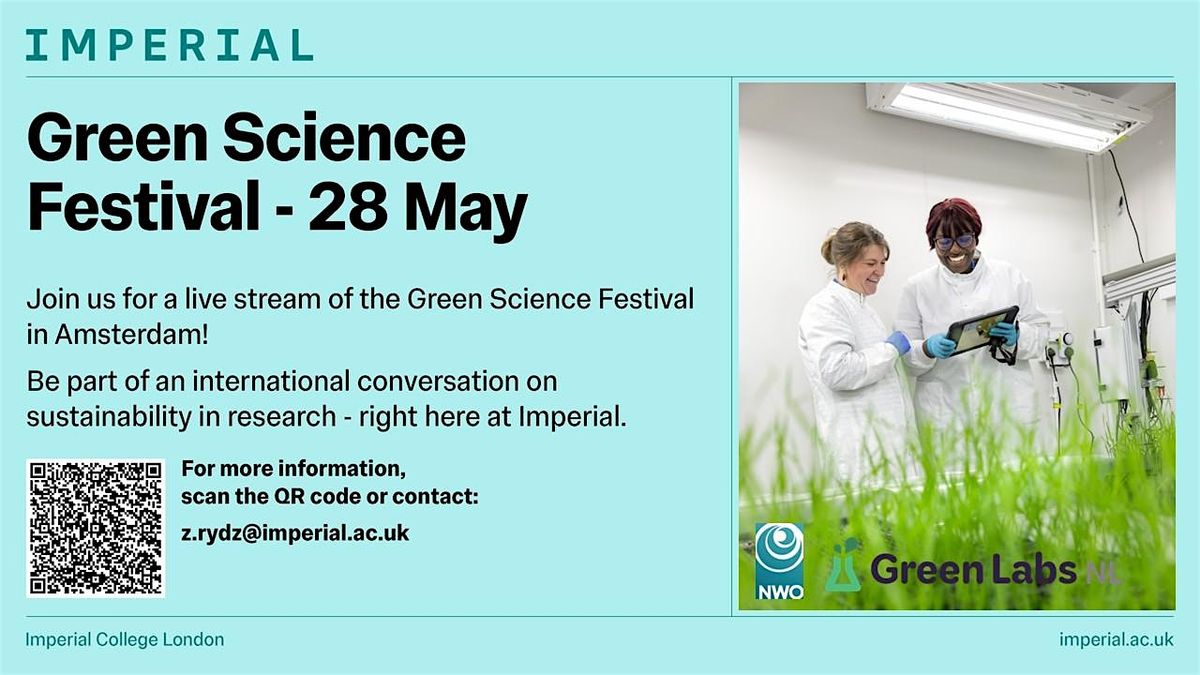 We will be streaming the festival throughout the day on Thursday, 28 May 2026, creating an opportunity for colleagues in London to drop in, connect, and engage with the programme locally. This would be a full-day event focused on advancing environmental sustainability in research, featuring inspiring presentations, interactive break-out sessions, and opportunities to network.
