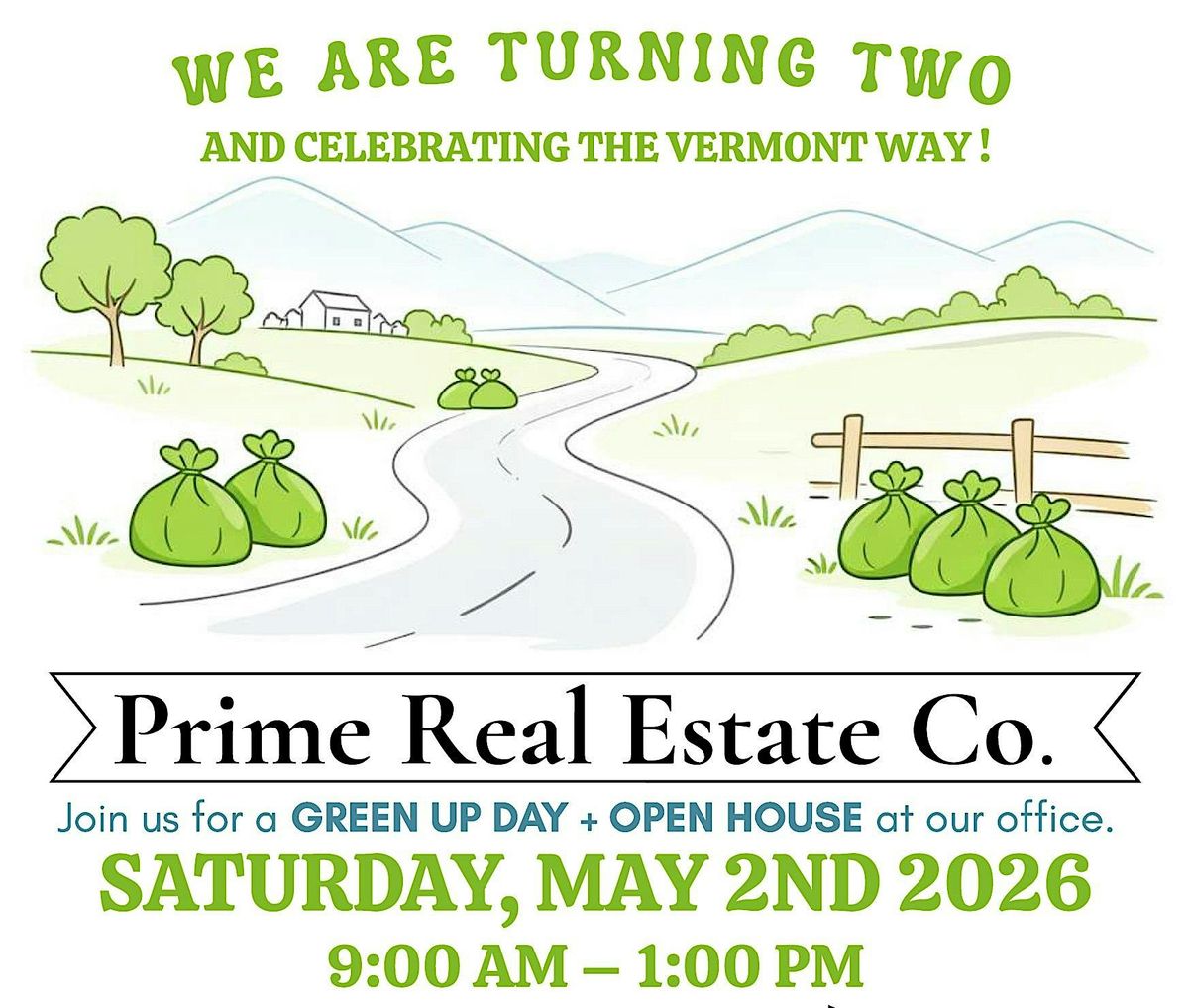 Join us to green up the community and celebrate Prime Real Estate’s 2-year milestone in style!