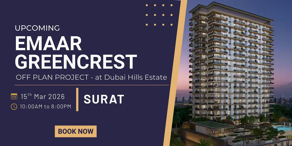 Explore Greencrest by Emaar, a premium residential development at Dubai Hills Estate during this exclusive off-plan property expo in Surat.