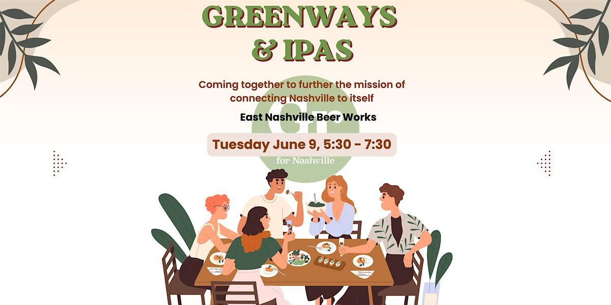 Come join us at East Nashville Beer Works for a fun-filled event celebrating greenways and delicious IPAs! Whether you're a nature enthusiast or a craft beer lover, this event is perfect for you. Enjoy an evening of sipping on refreshing IPAs with like-minded Nashville neighbors. Don't miss out on this unique opportunity to connect with folks and indulge in tasty brews. From 5:30 -7:30pm, swing by any time! Light food available, and your first drink is on us! See you there!