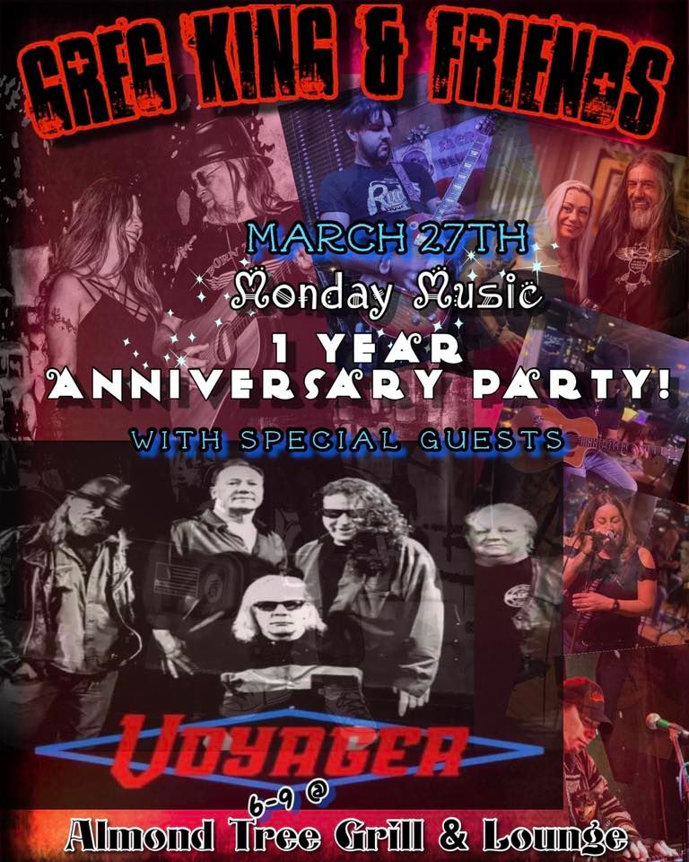 Join Greg King & Friends with Greg King, Wendy Emery & Alex Gillespie for a special 1 Year Anniversary Party on March 27th! That’s right! We’ve been rockin The Tree for 1 year!To celebrate...we’ve invited one of the hottest rock bands in the Sacramento region...Voyager - Ronnie Montrose Tribute Band featuring Rick Byrd on vocals, Glenn Whalen guitar, Mike Watkins guitar, Greg King bass, Pep Salinas drums! Stephen Salinas joining on keyboard and guest vocals by Katina Whalen! #NothinPersonalBand