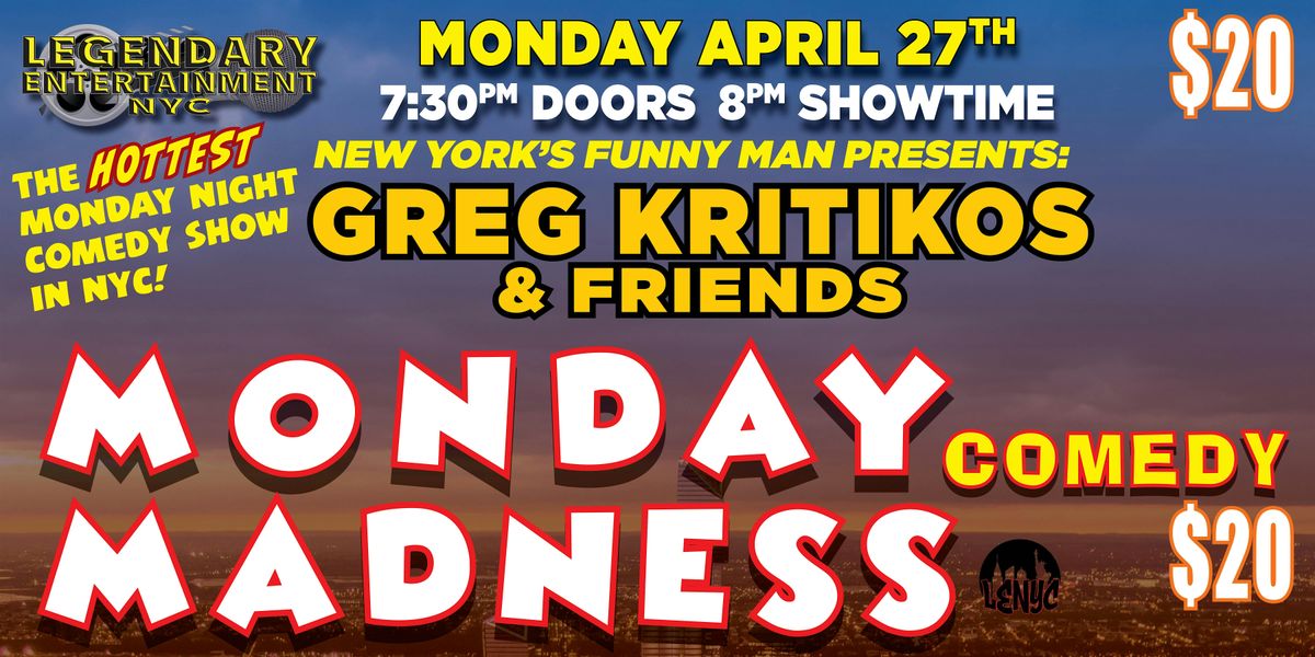 New York's Funny Man ,, was born in Athens, Greece and raised in Astoria, Queens. Greg is a producer, comedian, actor, voice-over artist, and creator. His mannerisms and stage presence have often drawn comparisons to those of his idol - the late, great Jackie Gleason. He channels his past through his comedy, making light of the darkest chapters of his life battling poverty, addiction, and obesity. His material is based on real life - turning personal tragedy into comedy. It's Monday Night Madness and hilarity at the Brodway Comedy Club as New York’s Funny Man assembles top talent to entertain the masses!