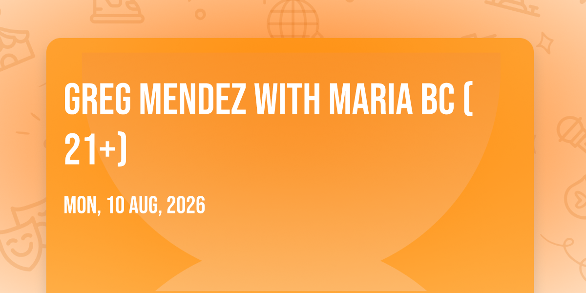 📍 Location: 32.7551, -117.115🎉 Welcome to Greg Mendez with Maria BC (21+), where the impossible becomes possible and dreams take flight! 🏛️ Join us at Soda Bar in the heart of San Diego, CA for an event that will redefine your expectations. 📅 On August 10th, 2026 at 02:00 AM, witness the transformation of space and time into something truly magical. ✨ It's a curated experience combining the best of innovation, entertainment, and community spirit, creating moments that will be remembered for years to come. Whether you're a first-time visitor or a seasoned enthusiast, prepare to be amazed. 🎊 Book now to ensure your place in this unforgettable experience!