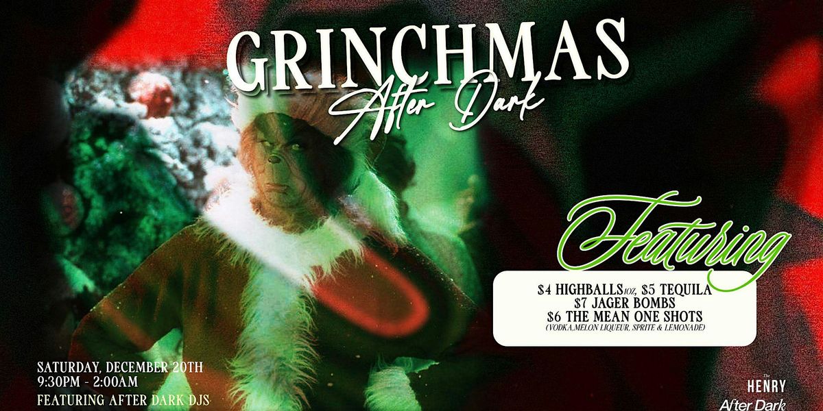 Welcome to GRINCHMAS AFTER DARK AT THE HENRY! Come join us at The Henry Public House for a festive late-night celebration where the holiday spirit meets a little mischief. Whether you’re in the mood for a themed cocktail or dance the night away, this event has something for everyone.