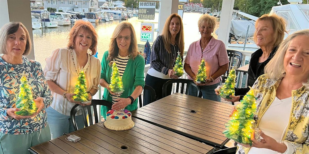 All your supplies, glass, cone, lights, batteries, hot glue and tree topper are included. Food and drinks available for purchase. This is fun art, not fine art. ArtistAtHeart.org