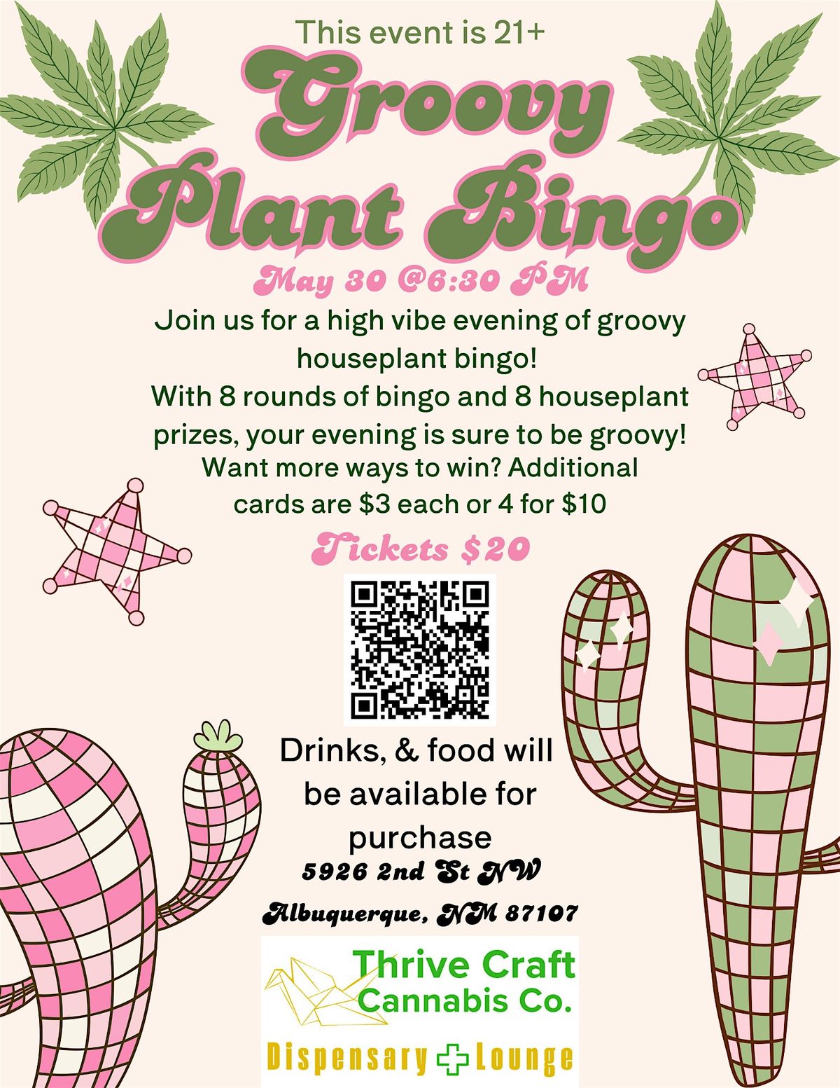 🌼With 8 rounds of bingo and 8 houseplant prizes, your evening is sure to be groovy!🌵