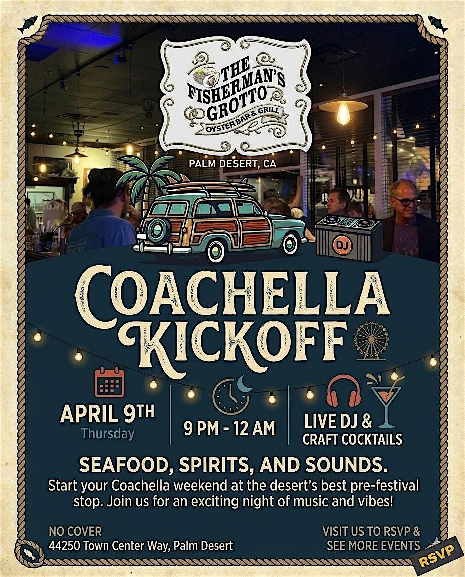 🗓️ Date: Thursday, April 9th ⏰ Time: 9 PM – 12 AM 📍 Location: Fisherman's Grotto, 44250 Town Center Way, Palm Desert 🚫 No Cover.
