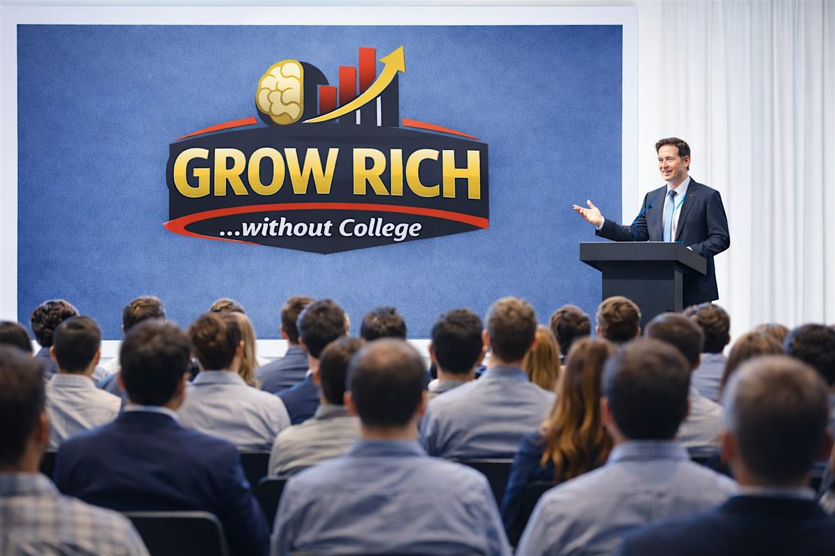 Ready to level up your life without the college route? Join us for an inspiring in-person event where you'll discover smart ways to build wealth, hustle hard, and grow rich on your own terms. No lectures, no boring stuff — just real talk and actionable tips to kickstart your success. Don't miss out on this chance to rethink the future and make moves that count!