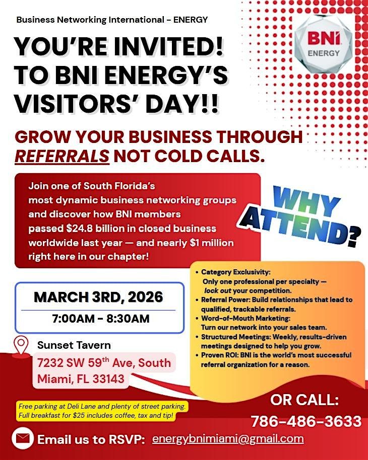 Join us for an exciting start of your day by networking with local business owners at the Deli Lane Cafe & Sunset Tavern, in beautiful South Miami, FL. This in-person event offers a unique opportunity to connect with like-minded business owners and professionals, exchange ideas, and expand your business network.