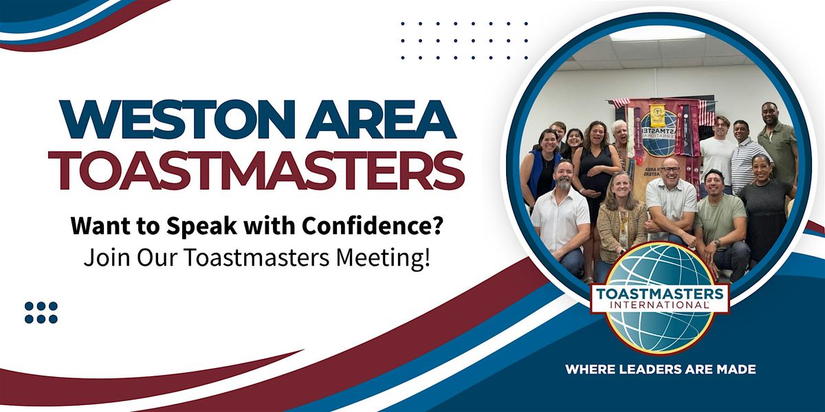 Weston Area Toastmasters is a supportive, encouraging space to practice public speaking, improve communication, and grow your leadership skills, one meeting at a time.