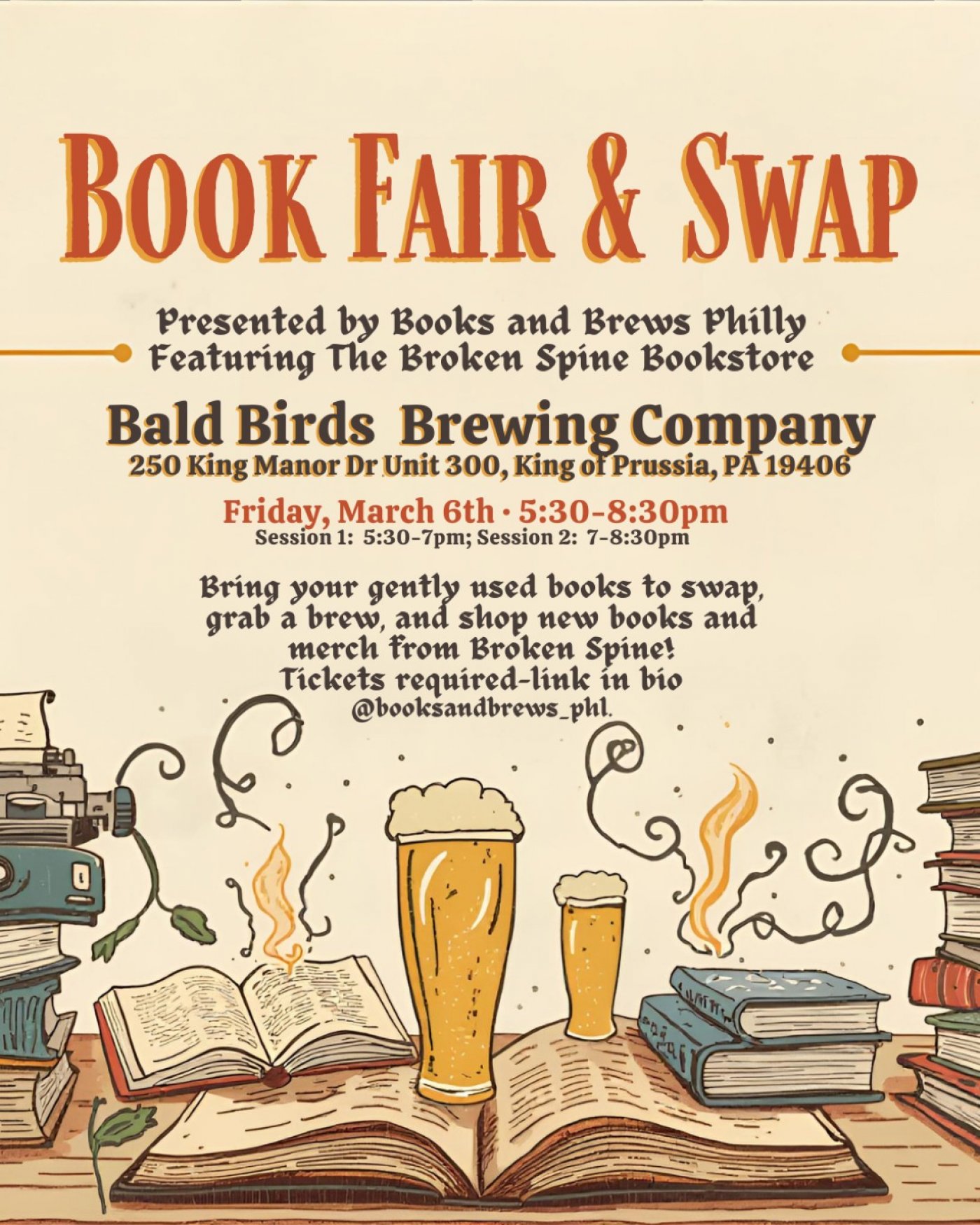 Books and Brews Philly is back at Workhorse Brewing and this time, we are teaming up with our friends at The Broken Spine Bookstore to bring you a a book lover's dream event...a grown-up book fair and swap! Bring a gently used book(s) to swap, grab a brew and shop new books and merch from The Broken Spine! This event is 21+.