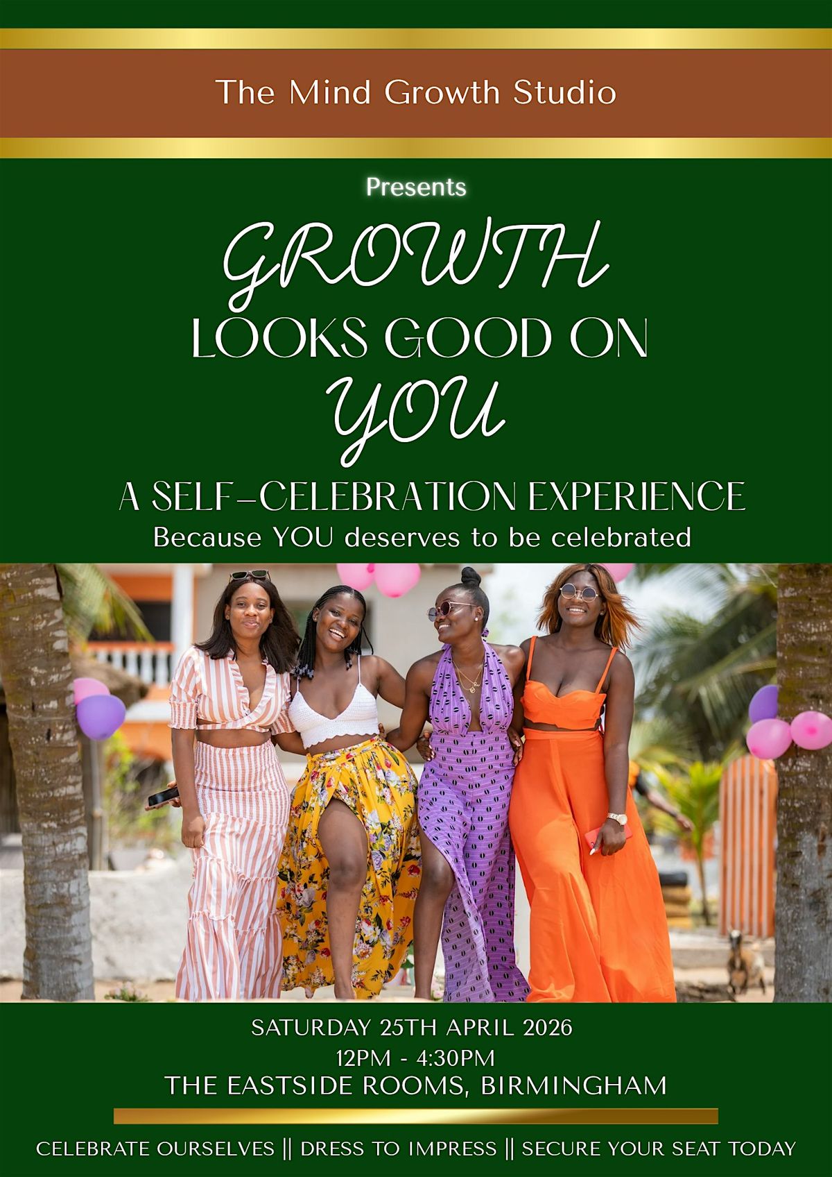 Growth Looks Good On You is a powerful celebration of real journeys, real growth, and lived experiencs. This event brings testimonials to the forefront, stories that prove what’s possible when you choose yourself. You’ll hear from inspiring speakers who speak life, confidence, and self-belief into every room they enter, leaving you feeling seen, encouraged, and self-empowered. Gentle breathwork is woven into the experience to help you slow down, reconnect, and truly be present. The intention is simple: to honour how far you’ve come and remind you that your growth already looks good on you.
