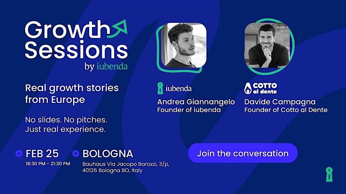 Join us in Bologna for an informal, interview-style conversation with Andrea Giannangelo, Founder of iubenda, and Davide Campagna, Founder of Cotto al Dente. We’ll talk openly about growth, product, content, community, and what it actually takes to build and scale sustainable businesses from Europe to the world.