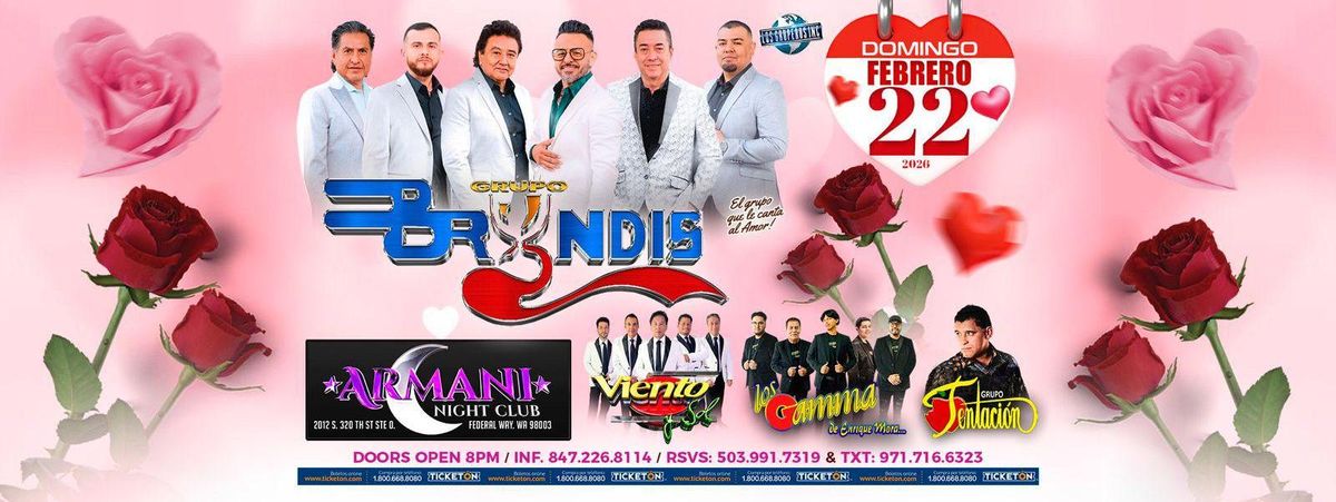 **Attend GRUPO BRYNDIS, GRPO TENTACION & MAS at Armani Night Club, Federal Way, WA, United States** Join us for GRUPO BRYNDIS, GRPO TENTACION & MAS . It's going to be a fun and relaxed event with great music and good company. A perfect way to spend your evening. **Event Details:** * **Location:** Armani Night Club, Federal Way, WA, United States Register now to secure your spot at this landmark event. #GRUPOBRYNDIS,GRPOTENTACION&MAS #event #exciting #Federal WayEvents #WAEvents