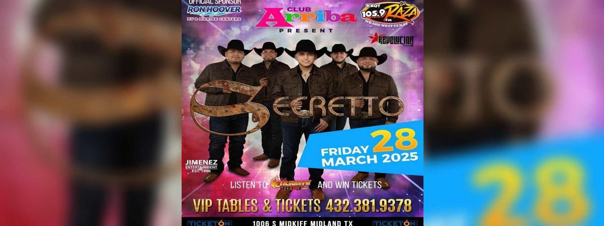 Don't miss 'GRUPO SECRETTO EN MIDLAND, TX', the premier exciting event happening at Club Arriba , Midland, TX, United States. This event showcases the best talent and expertise in the field. Immerse yourself in a world of opportunities and cutting-edge ideas. Book your attendance today and be part of something extraordinary. #GRUPOSECRETTOENMIDLAND,TX #event #exciting #MidlandEvents #TXEvents