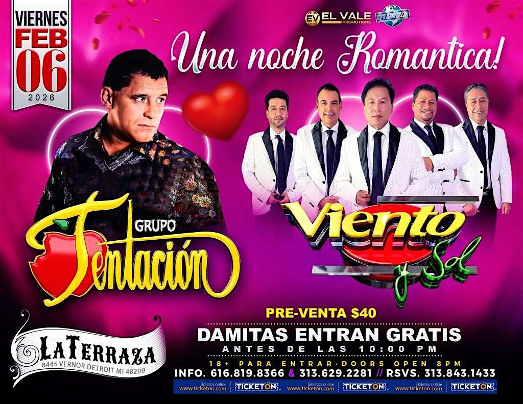 Get ready to dance the night away with GRUPO TENTACION VIENTO Y SOL, it's going to be a party you won't want to miss!About this Event