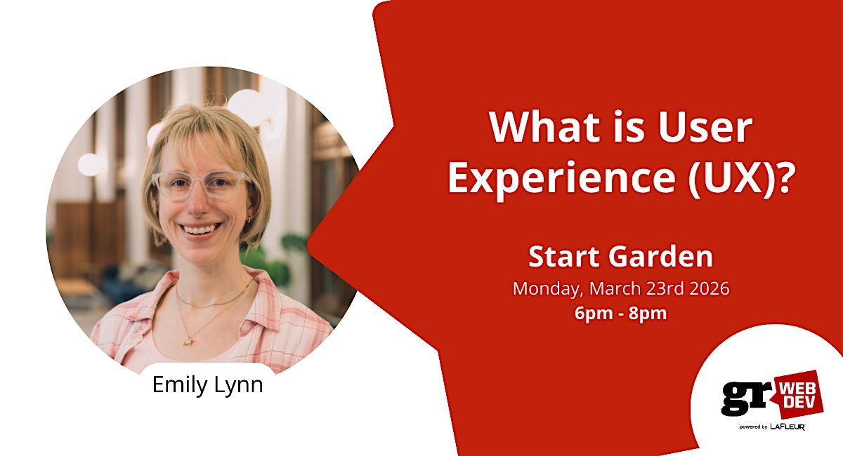 This month at GRWebDev, Emily Lynn will give us a crash course introduction to the practice of User Experience. Starting with conception to visual design, we’ll learn the various ways UX can be implemented into a project through every step of the creation process.