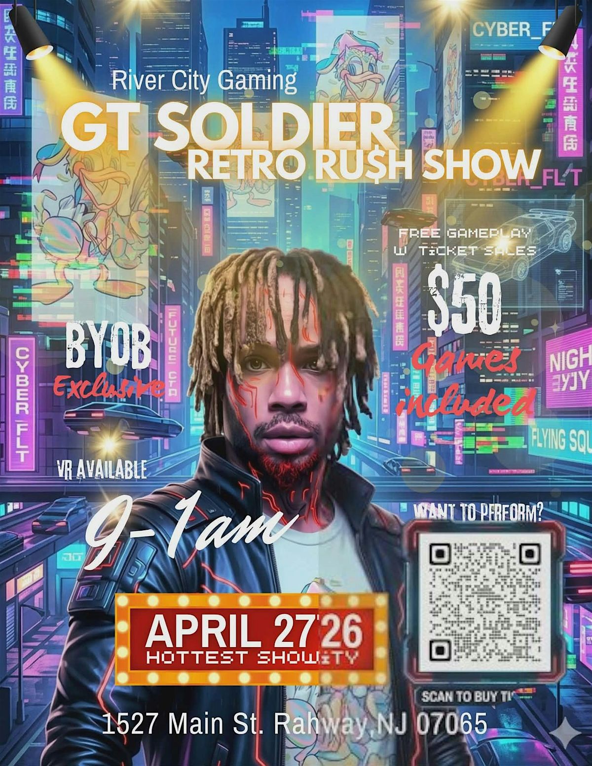 Unlock the ultimate experience for the GT Soldier Retro Rush Show at River City Gaming! This VIP All-Access pass is designed for the fans who want to dive deep into the cyberpunk vibes and high-energy performance without limits.