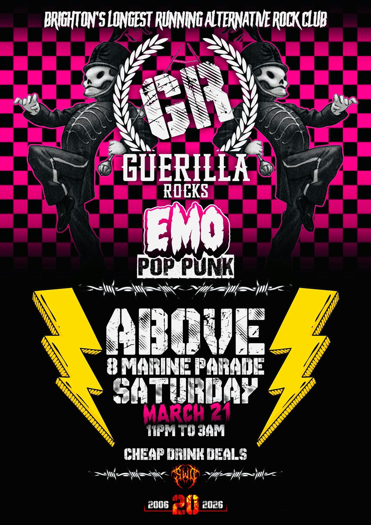 This month we’re throwing an Emo/Pop-Punk special. Come one come all to this tragic affair and dance, dance the night away!Hey folks, we're Guerilla Rocks and we've been running for nineteen years - and now we are Brighton's longest running club night (we think)!