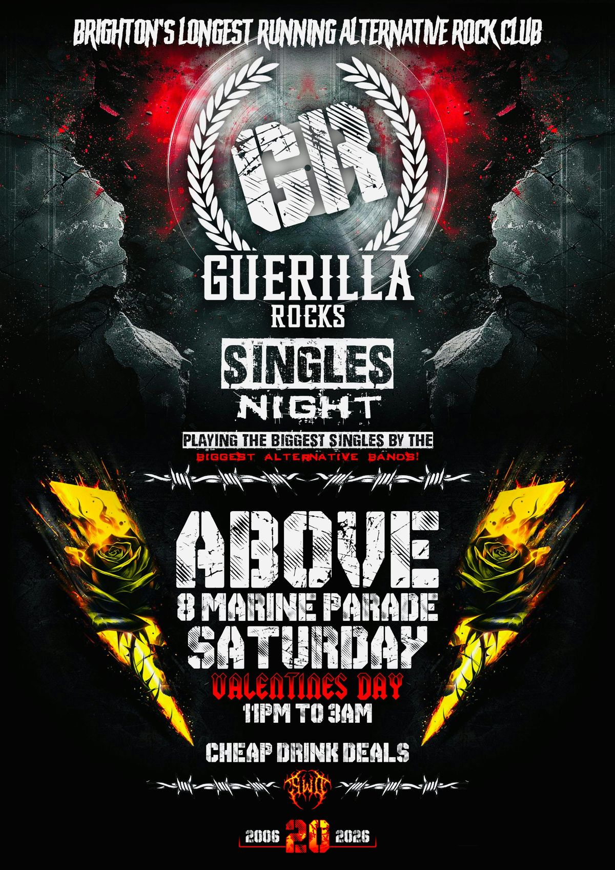 It’s Valentines Day so we’re hosting “Singles Night” - Playing the biggest singles by the biggest alternative artists!Hey folks, we're Guerilla Rocks and we've been running for nineteen years - and now we are Brighton's longest running club night (we think)!