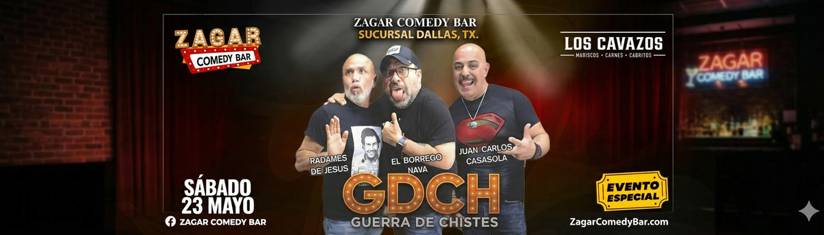 Experience the exciting event 'GUERRA DE CHISTES ' at ZAGAR COMEDY BAR , Dallas, TX, United States. This must-attend gathering promises an unforgettable experience for all attendees. Join us for a day filled with innovation, networking, and inspiration. Register now to secure your spot at this landmark event. #GUERRADECHISTES #event #exciting #DallasEvents #TXEvents