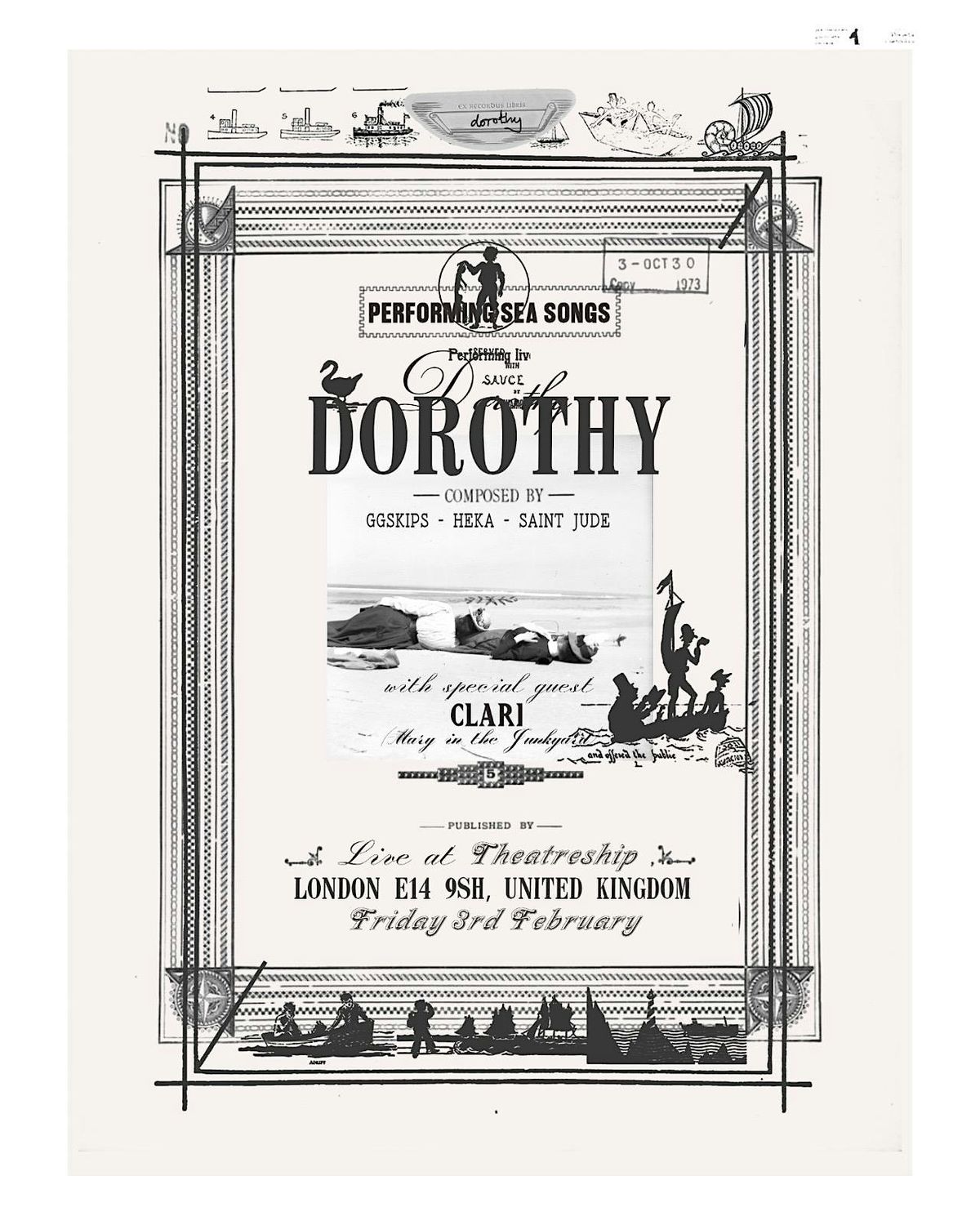 Formed of artists and friends Jude Woodhead (aka Saint Jude), Marco Pini (GG Skips, Sorry, RIP Magic) and Francesca Brierley (aka heka), Dorothy have emerged as one of London's new DIY gems.Their anticipated debut EP Sea Songs was released by Angel Tapes, an imprint of New York's Fire Talk (Mandy Indiana, Deathcrash, Kassie Krut) garnering acclaim from the likes of DIY, NME, The Line Of Best Fit.Presenting a collection of songs with strong ties to the sea, the group head to the water as they bring their debut show, and only London headline of the year, to the Theatreship, with support coming from the brilliant Clari of London's finest Mary in the Junkyard.
