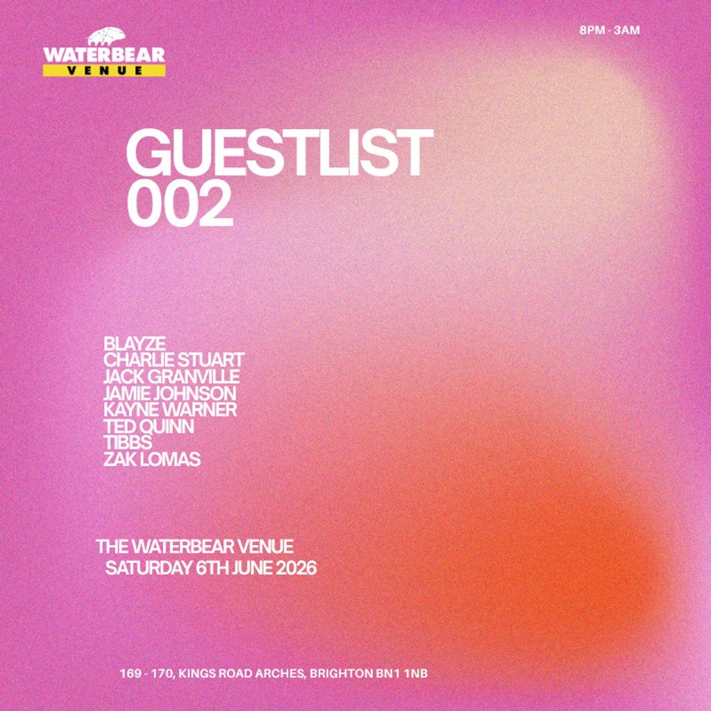 Guestlist takes over The WaterBear with a stacked lineup featuring some of the South Coast's hottest up and coming DJs... This is one to not miss!!Music Genres : House, Tech House
