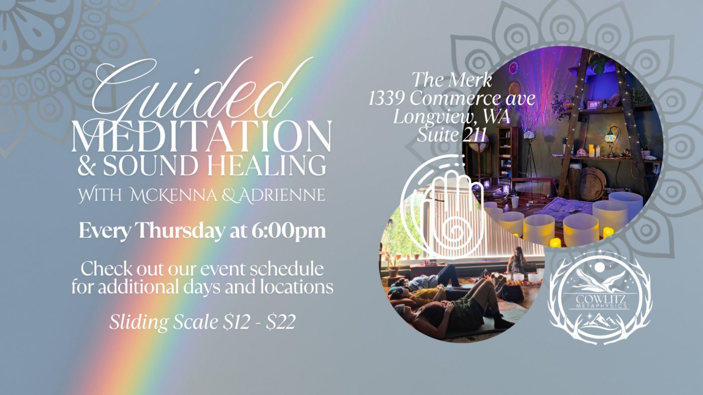 We start with a light energy cleanse before we move into a verbal guided meditation supported by the soothing sounds of 432 hertz quartz crystal singing bowls and other sound healing instruments lead by either McKenna or Adrienne, and sometimes both of us!