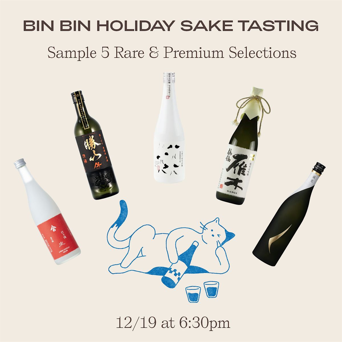 Join us for a Guided Premium & Rare Sake Tasting! For $35, enjoy a curated flight of five of our most exceptional bottles, featuring elegant sparkling nigori, legendary high-polish daiginjo, and rare sake aged for 8 years in the snow.