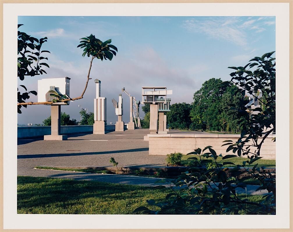 Photo credit: Robert Burley, CCA Garden: View of the esplanade and the allegorical columns, Montréal, Québec, Canada, 1990. PH1990:0160, CCA, Commissioned by CCA © Robert Burley