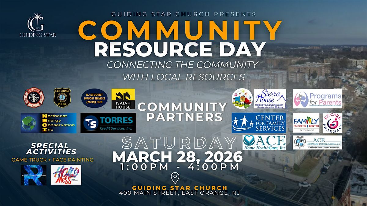 Free Community Resource Day! Connect with local resources, partners, face painting & a game truck. March 28 • 1–4 PM • East Orange.
