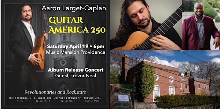 Join acclaimed guitarist and composer Aaron Larget-Caplan for the release concert of Guitar America 250, a sweeping musical tribute to 250 years of American creativity and courage. Taking place Sunday April 19 at 6pm in the historic Music Mansion, this one-hour program traces the nation’s evolving voice through music of revolutionaries, abolitionists, suffragists, immigrants, and rock legends.