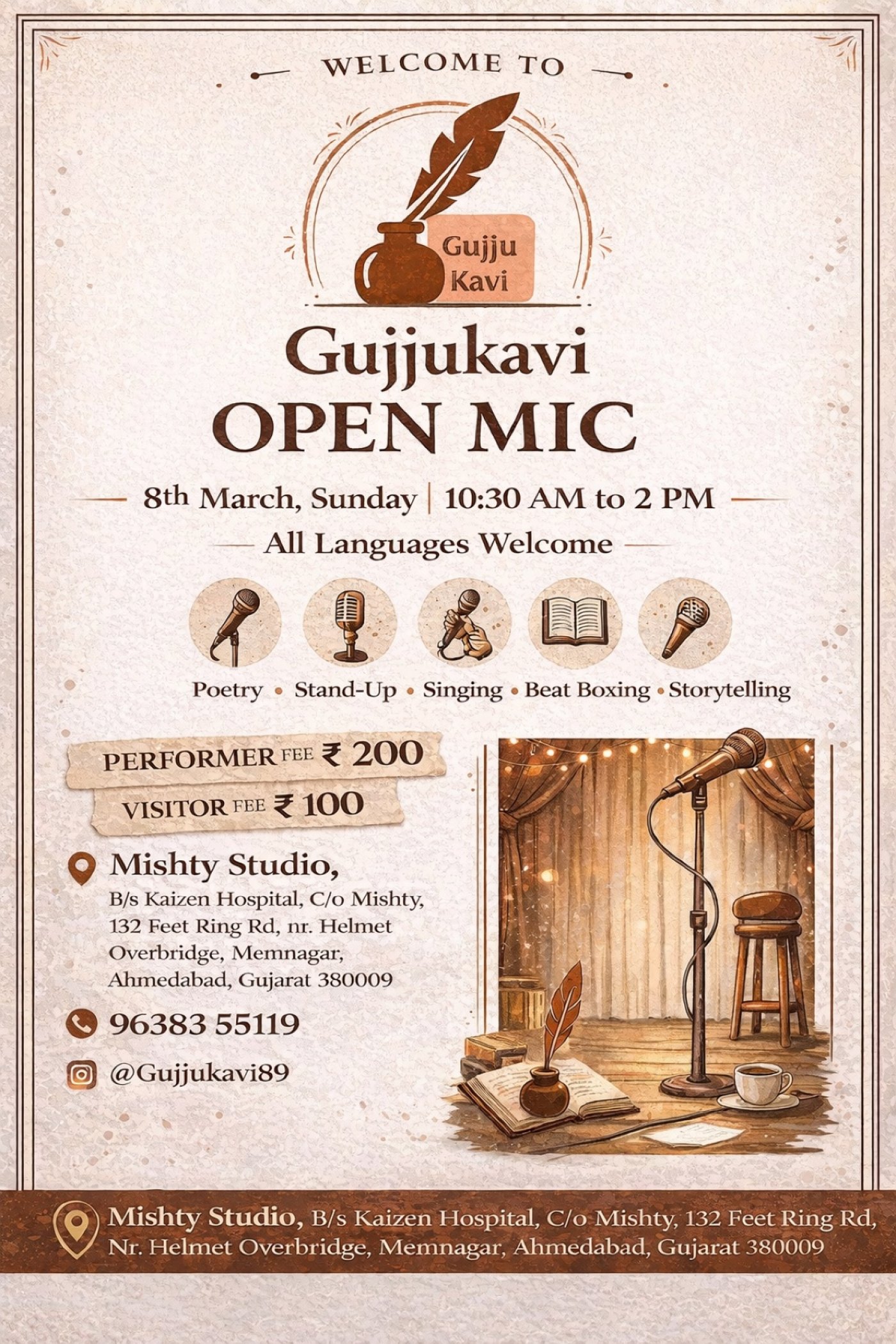 🎤 GUJJUKAVI OPEN MIC – 8th March (Sunday)
