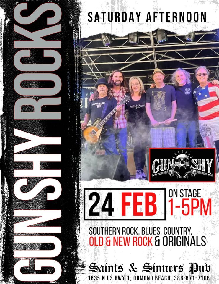 Gun Shy will ROCK Saturday Afternoon - February 24 - with some Southern Rock, Blues, County, Old and New Rock and Originals! On stage 1-5pm.