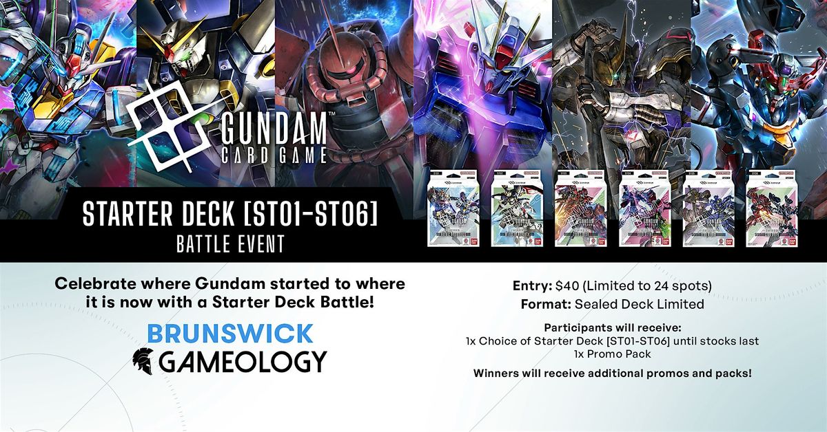 Celebrate where Gundam started to where it is now with a Starter Deck Battle Event at Gameology! We're cracking opening some starter decks and taking to the skits for top prizing. Do you got what it takes? Stock Limited, first come first served.