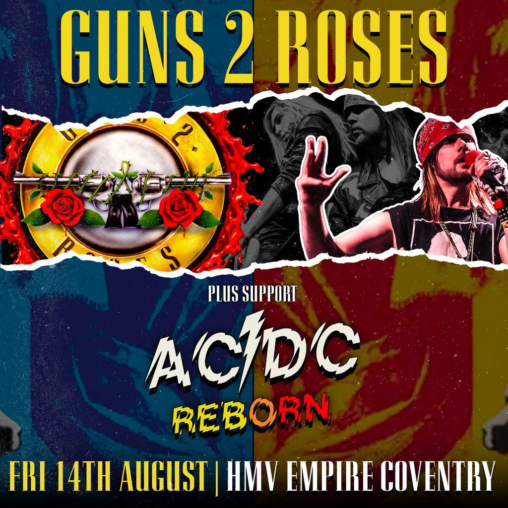 Guns 2 Roses, the UKs longest-running GNR tribute, hit Coventrys HMV Empire Aug 14 with an explosive, authentic show. Plus AC/DC RebornArtists