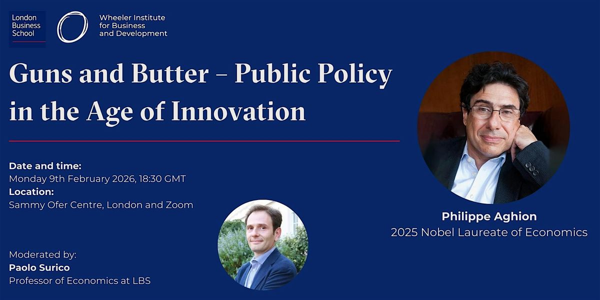 The Wheeler Institute is delighted to welcome Philippe Aghion, recent Nobel Laureate and one of the world’s foremost thinkers on innovation-led economic growth, to London Business School. The event will take place on February 9, 2026, and it will be the inaugural event of a limited series of conversations on Public Policy in the Age of Innovation.