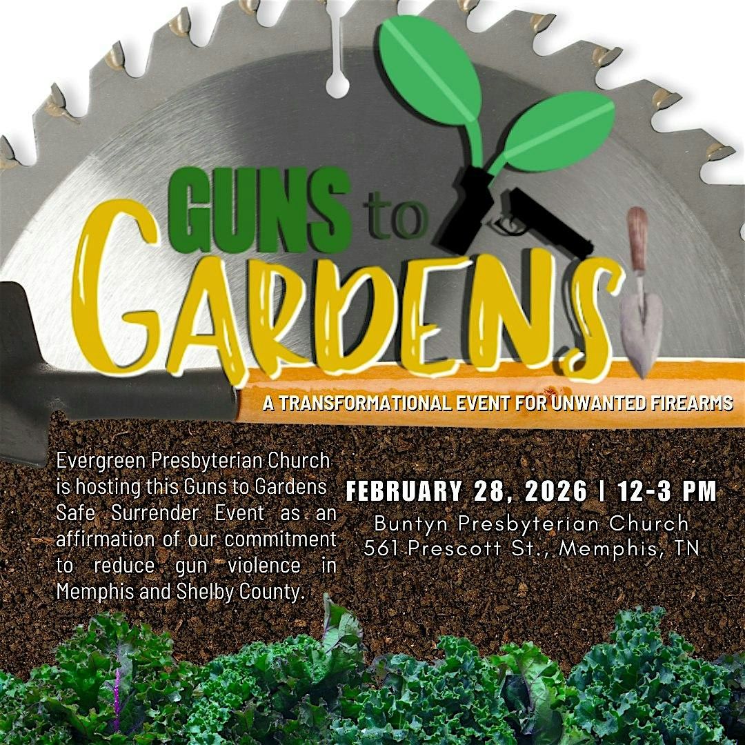 Guns to Gardens is an anonymous one-day safe surrender event where unwanted guns are dismantled to be transformed into garden tools, art, and more. People will receive a gift card to Kroger as a "thank you" for their donation!