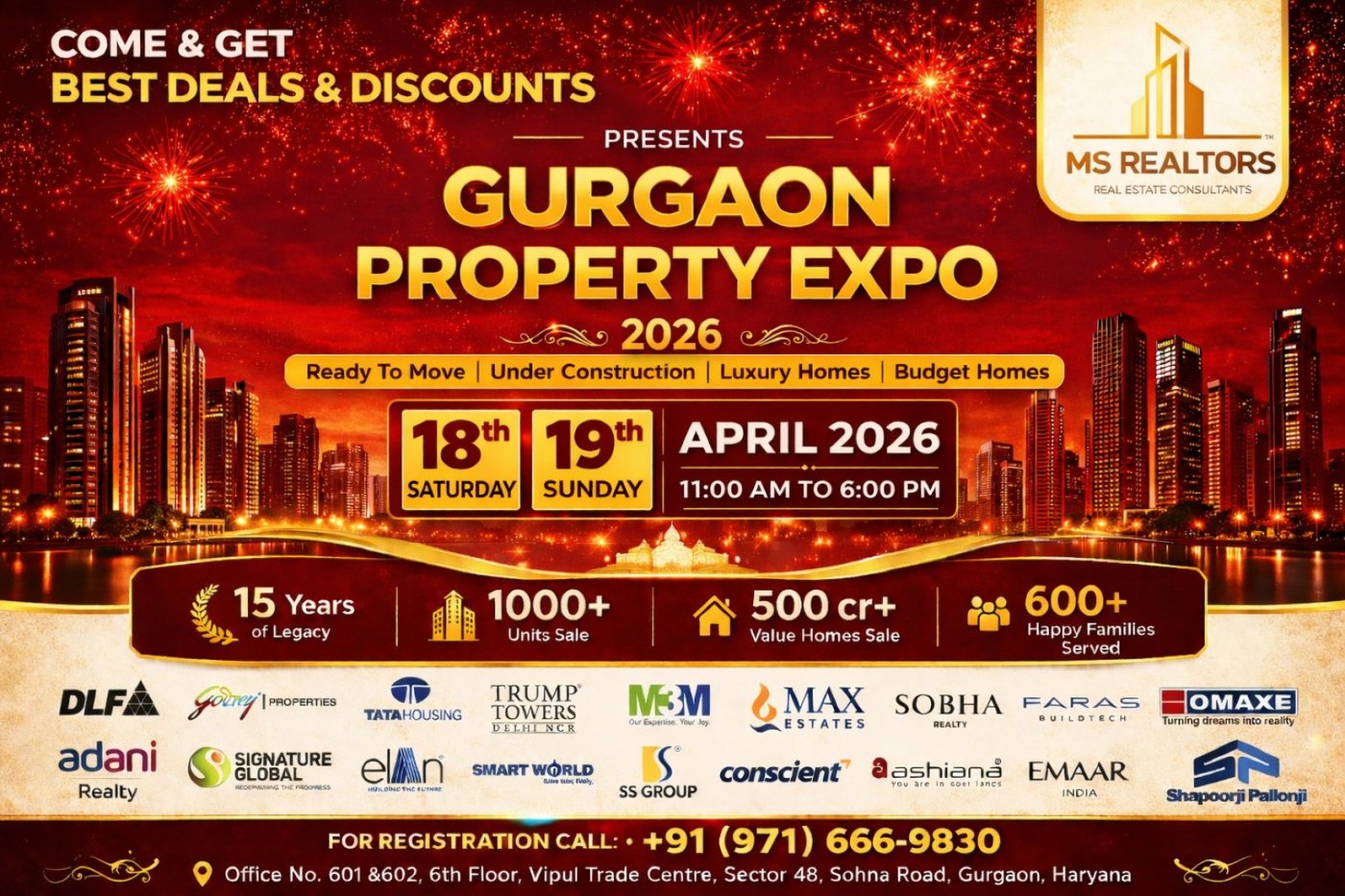 MS Realtors India presents the Gurgaon Property Expo—investment deep dive on Saturday, April 18, and grand deal day Sunday, April 19. DLF, M3M, Adani, Emaar, Godrej, and 13 more. Free entry. Sohna Road, Gurgaon.